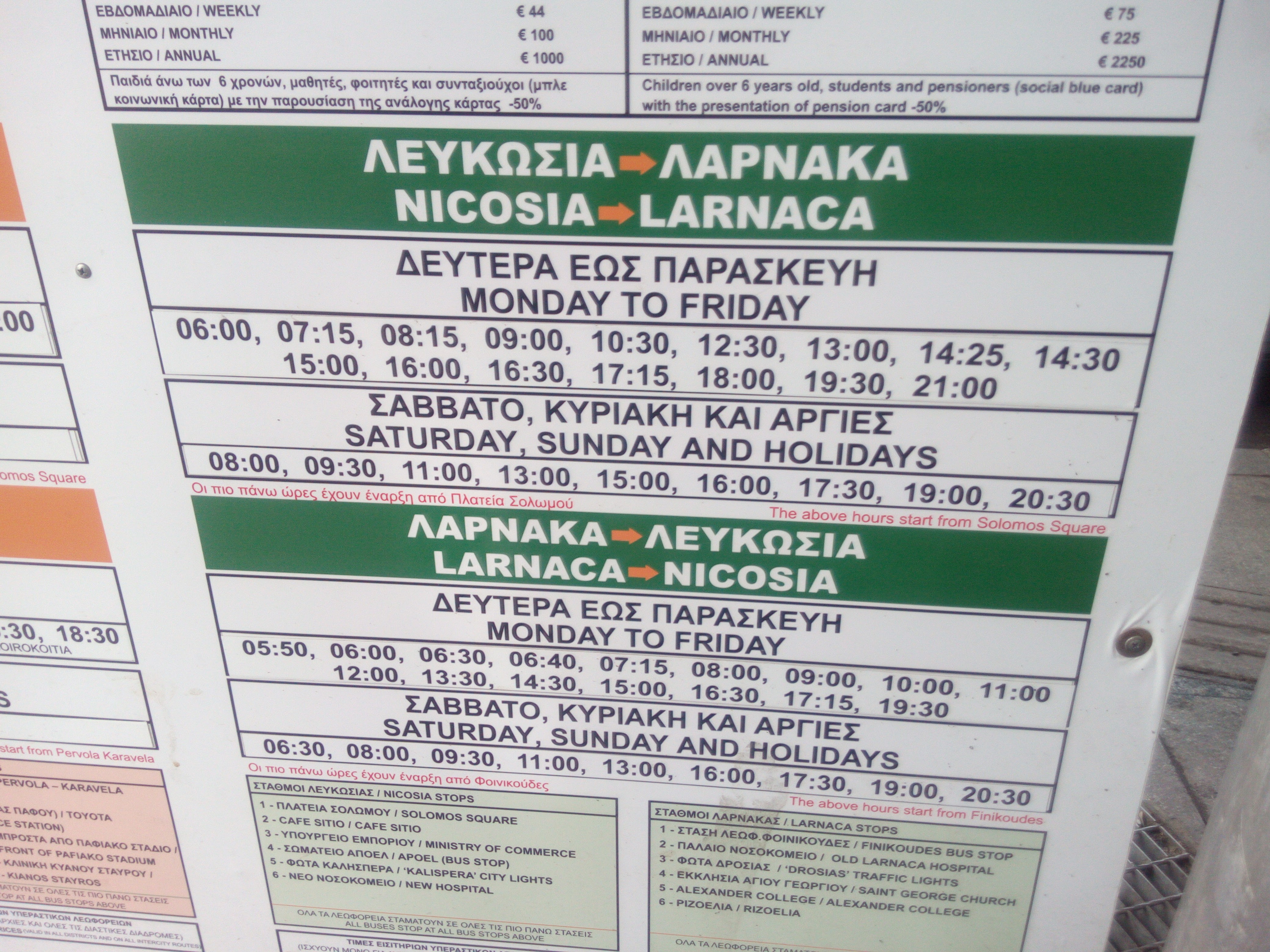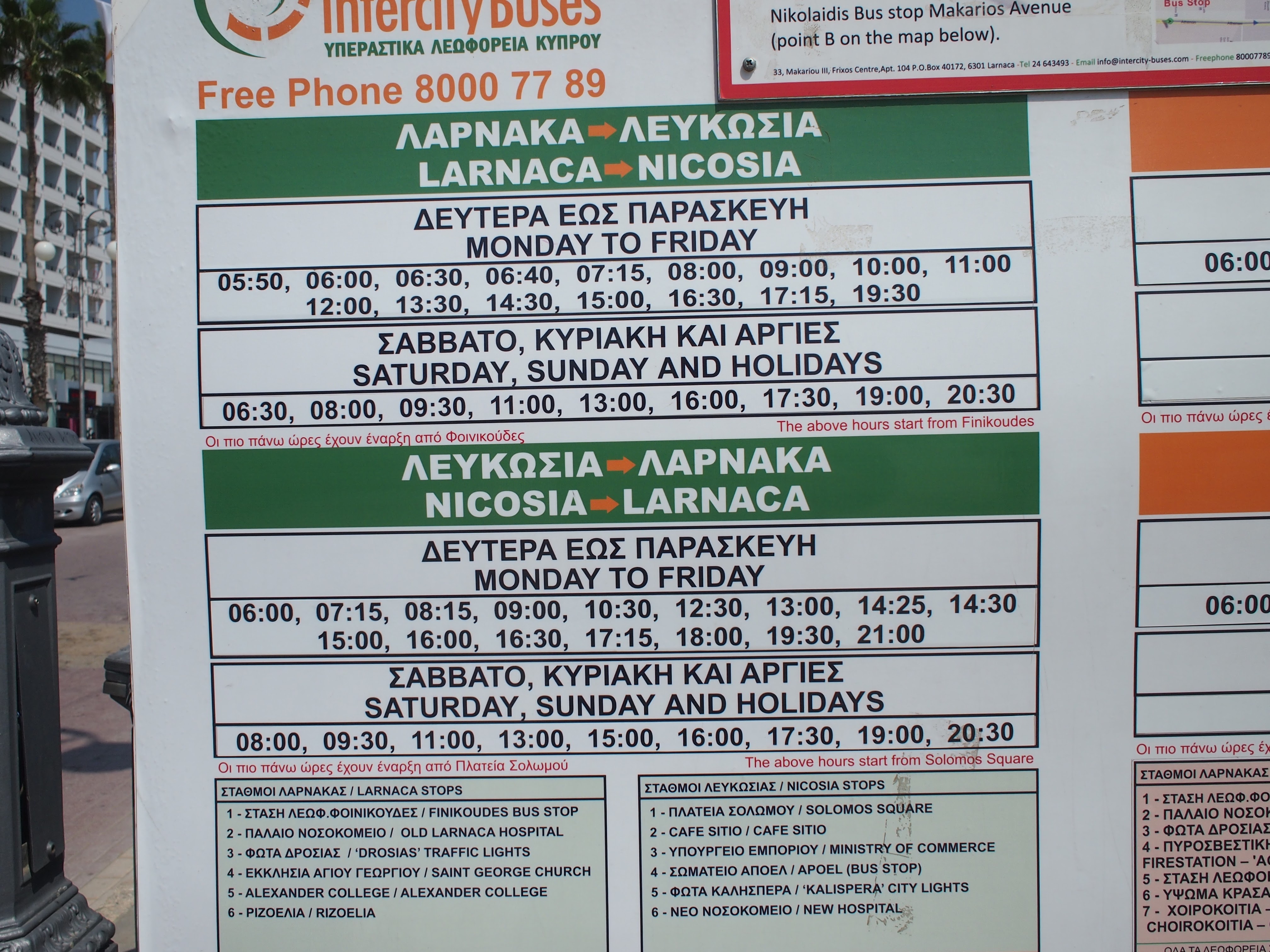 上記のバス停からニコシア市内へ行けます。料金は4ユーロ。