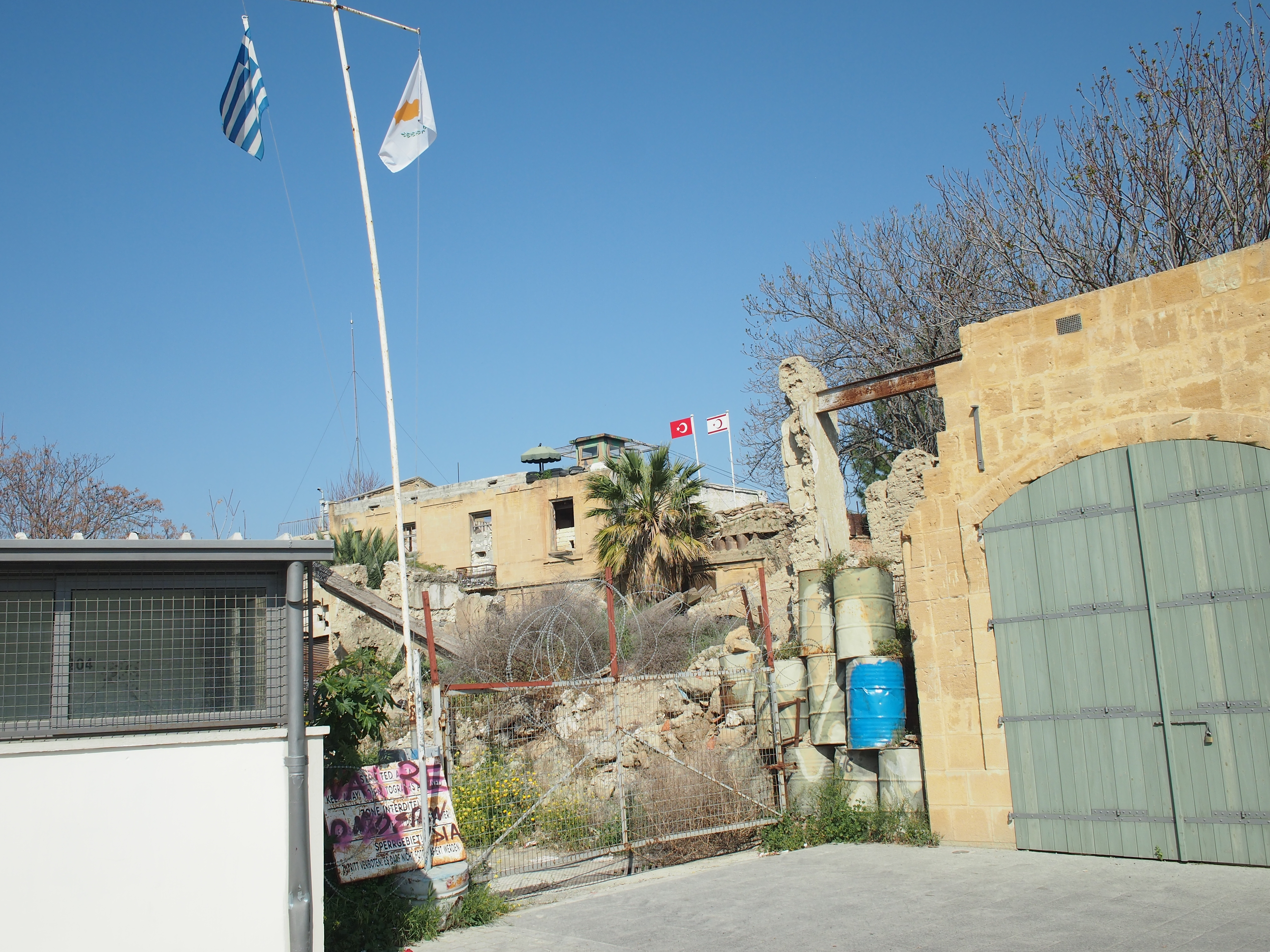 ここはいい感じに、手前に南キプロスの国旗、グリーンラインを挟んで奥に北キプロスの国旗が並んで見えました。