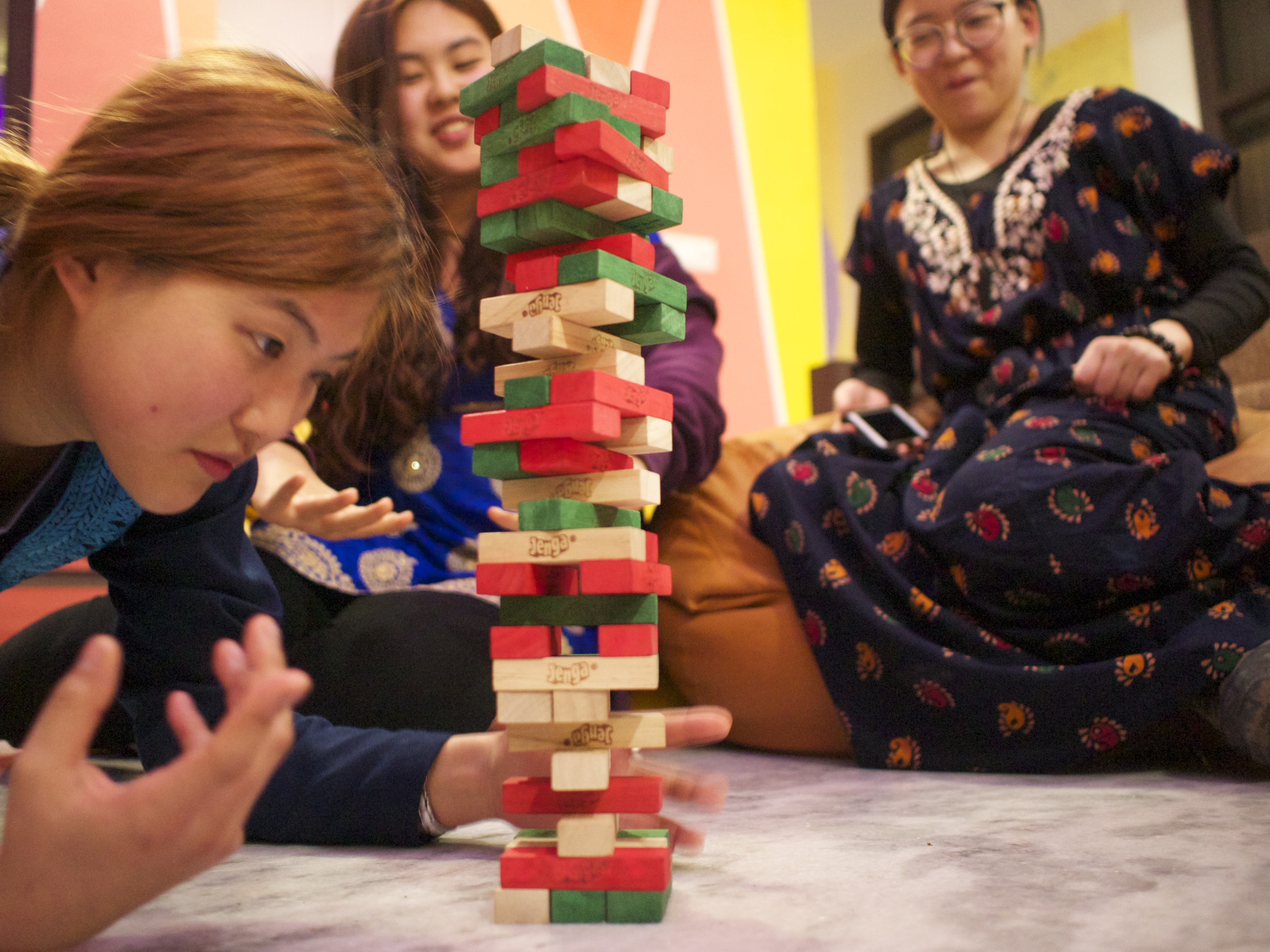 We spent same time together painting my face,playing jenga,badminton,visiting some heritage,going to have a dinner,teaching Japanese and Korean.