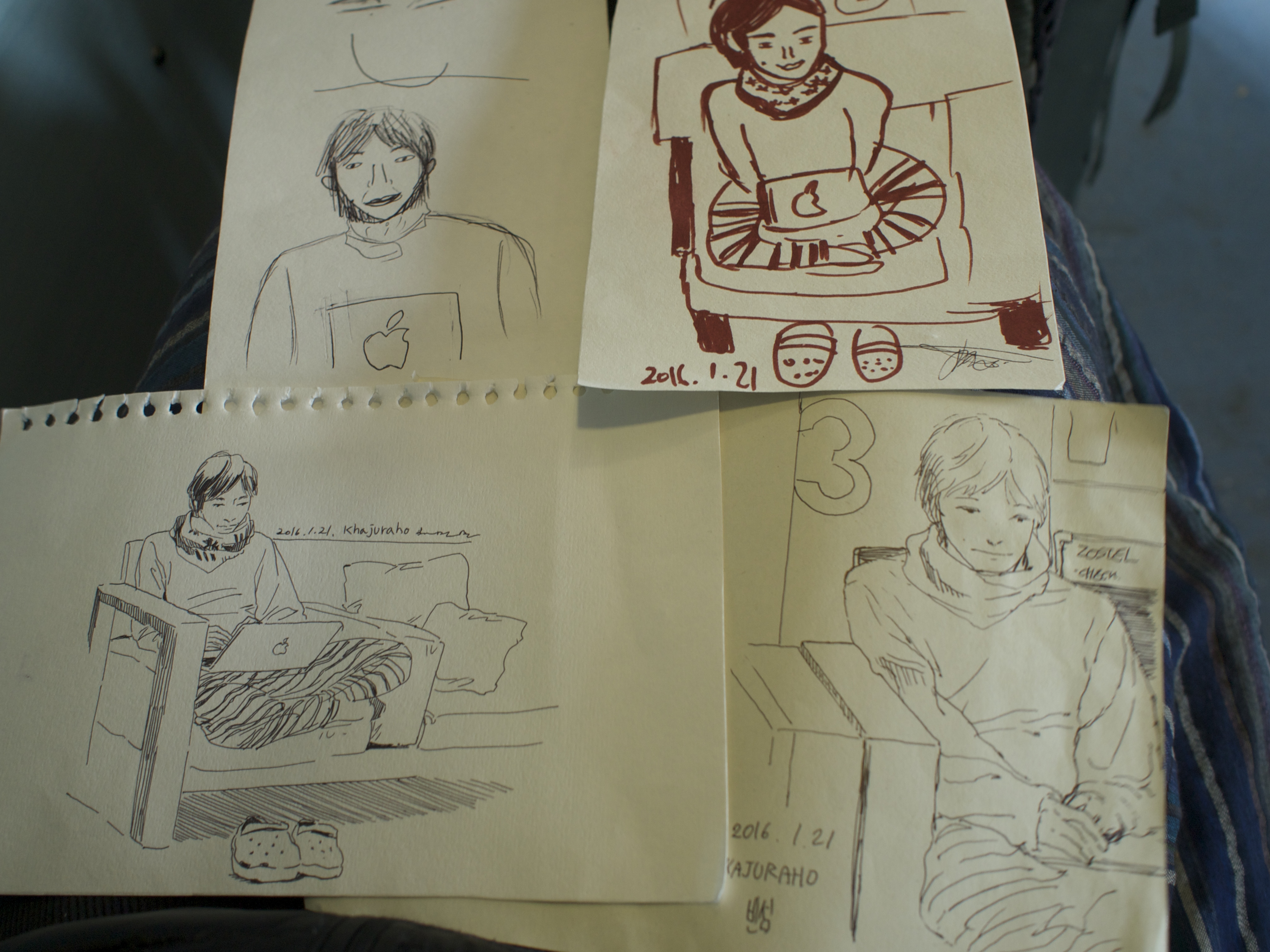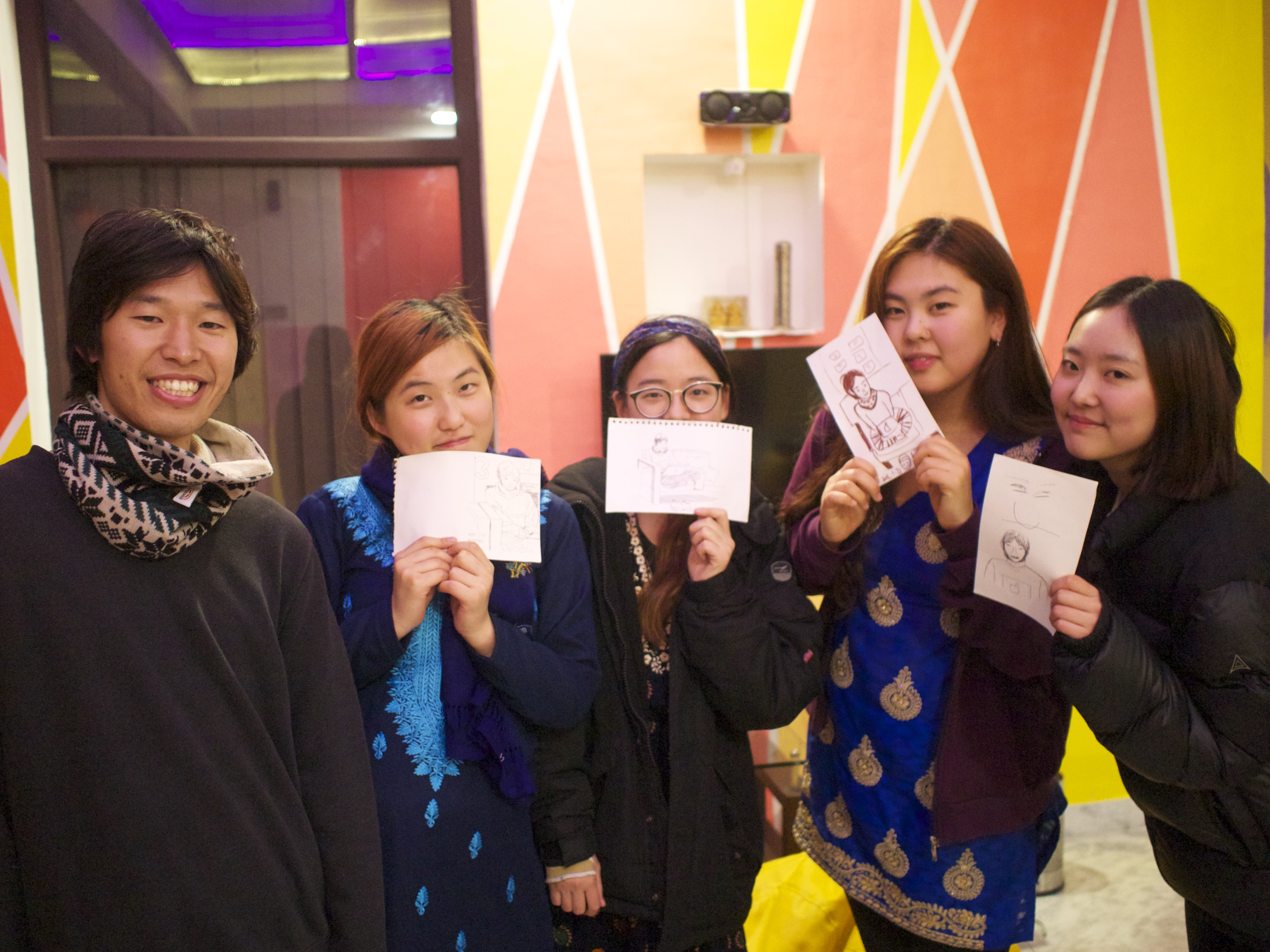 似顔絵書いてもらったり、ジェンガやったり、バトミントンやったり、(すでに行った)遺跡を一緒に巡ったり、夜ご飯みんなで食べに行ったり、日本語教えたり韓国語教えてもらったり。