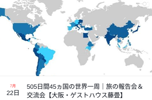 505日間45ヵ国の世界一周|旅の報告会&交流会【大阪・ゲストハウス藤畳】