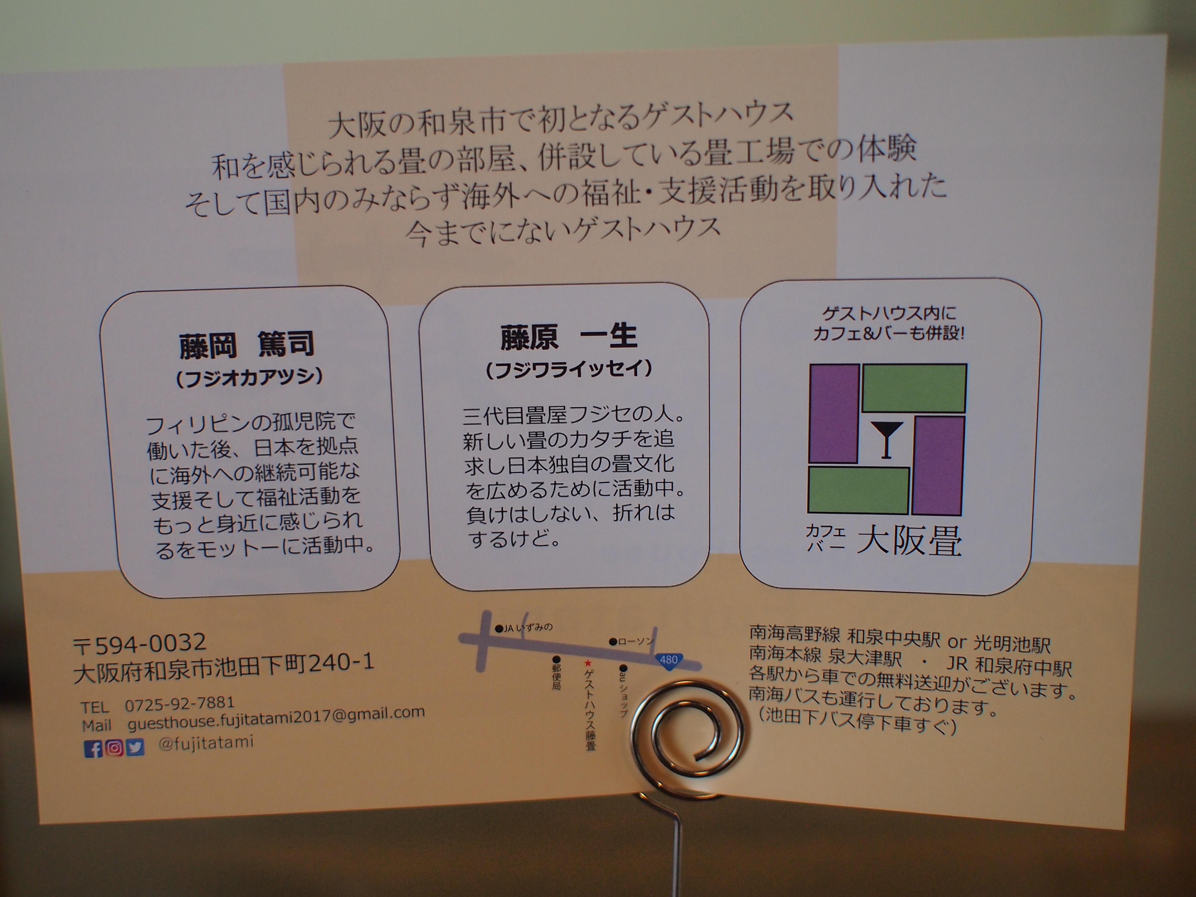 大阪・和泉市(いずみ市)にある「ゲストハウス藤畳」で旅のお話をします。