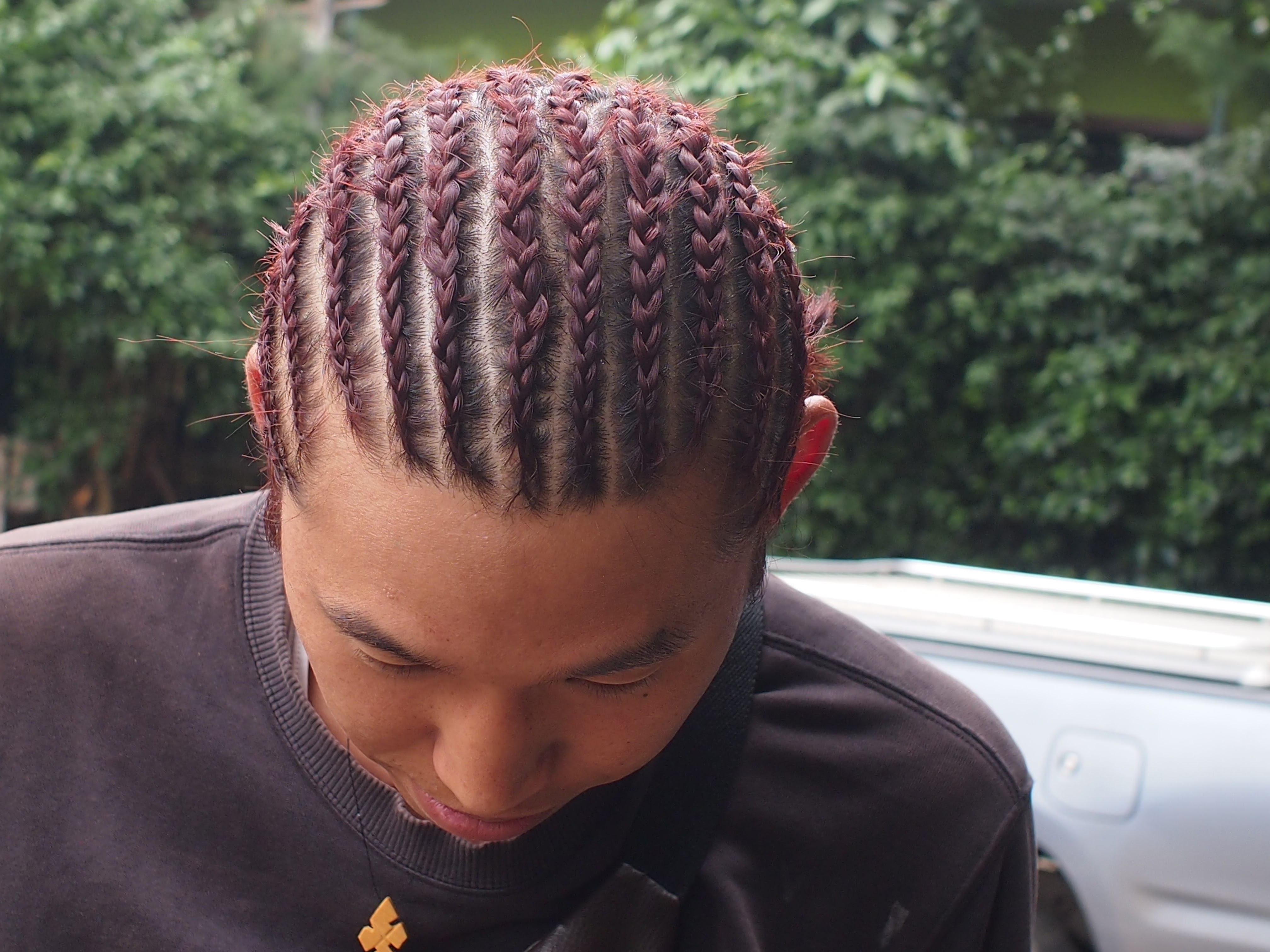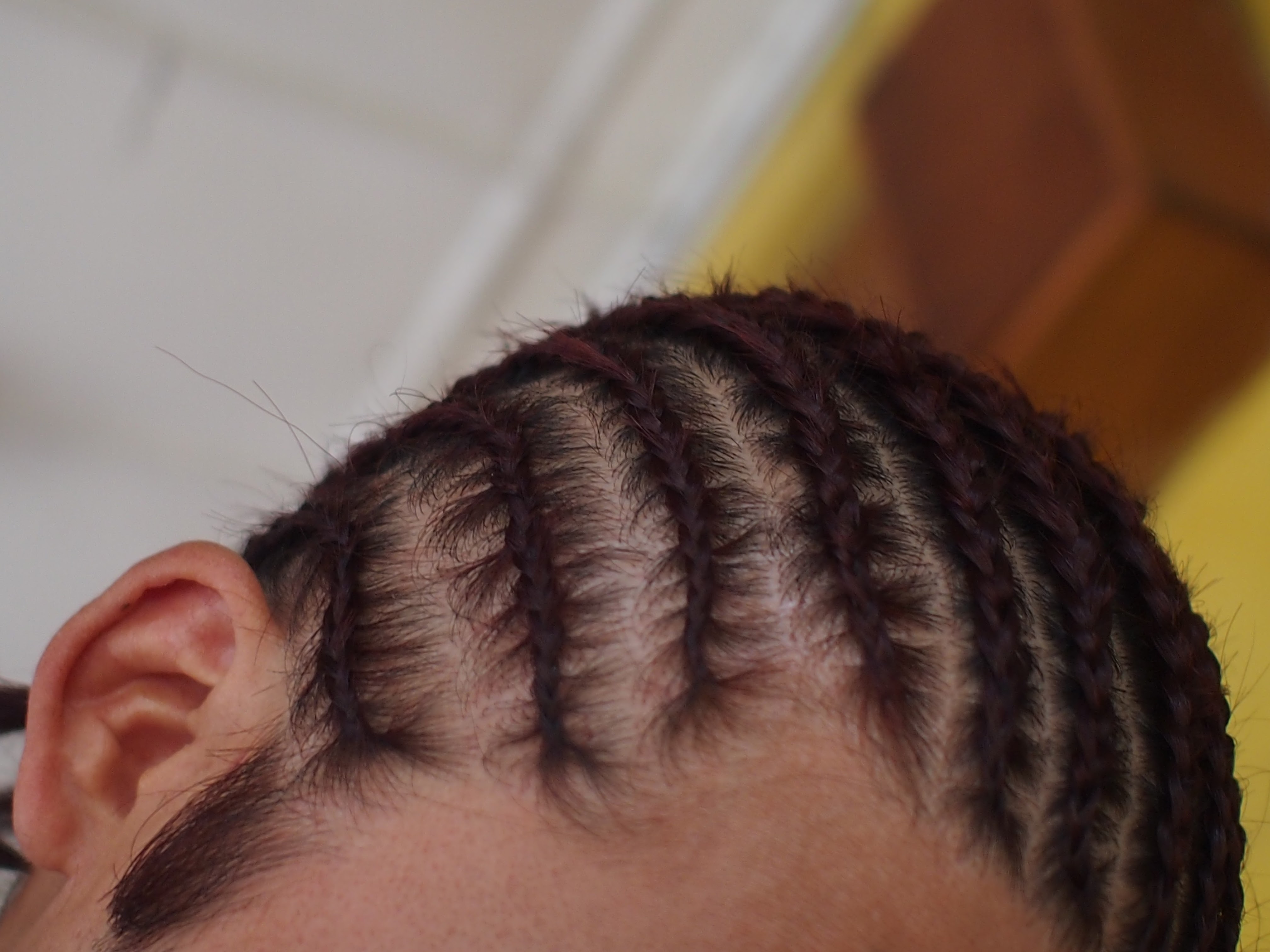 今回やってもらったのはシンプルな編み込みでしたが、編み込みをジグザクにしたり交差させたりして、地肌のラインを自由に魅せれたりできるので、次の機会があればまたやってみたいと思います。