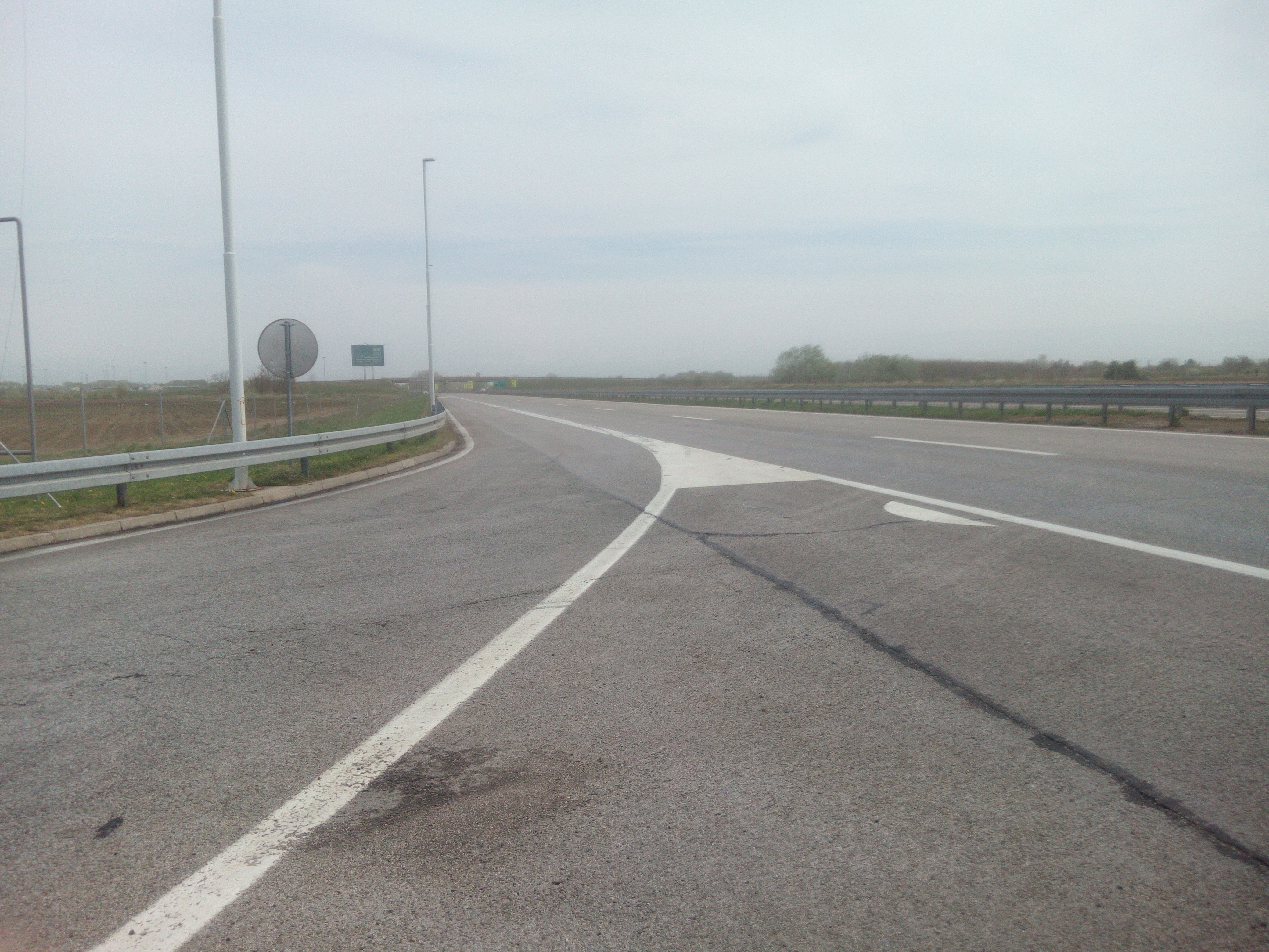 高速沿いは歩いちゃだめっぽいし、一本横の道から入って国境の道路側に侵入できるっぽいのでそっちを歩くことに。