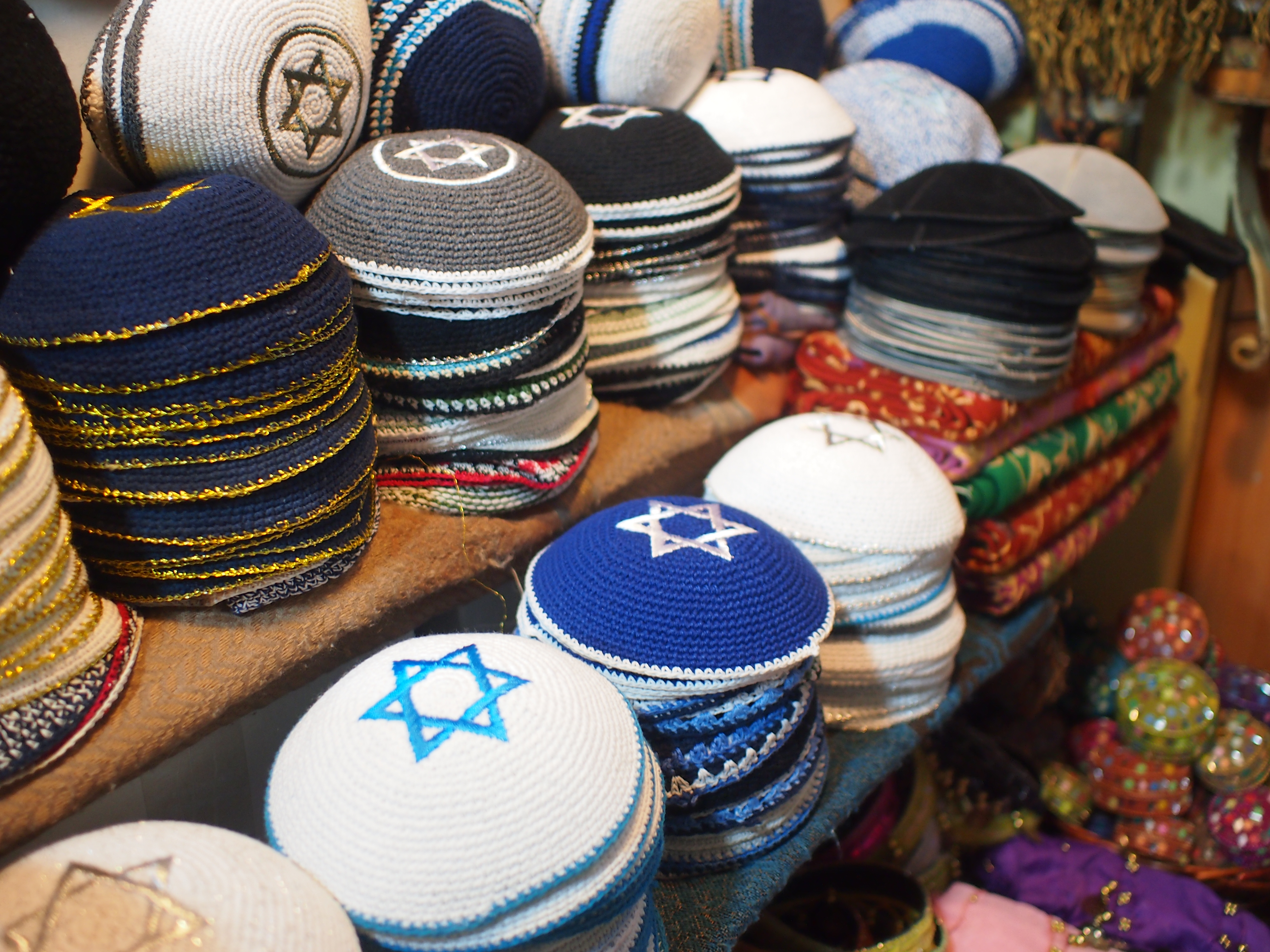 ユダヤ教では(礼拝のときは特に)男性は頭にキッパという小さな丸いものか、黒い帽子を被ることが決められています。