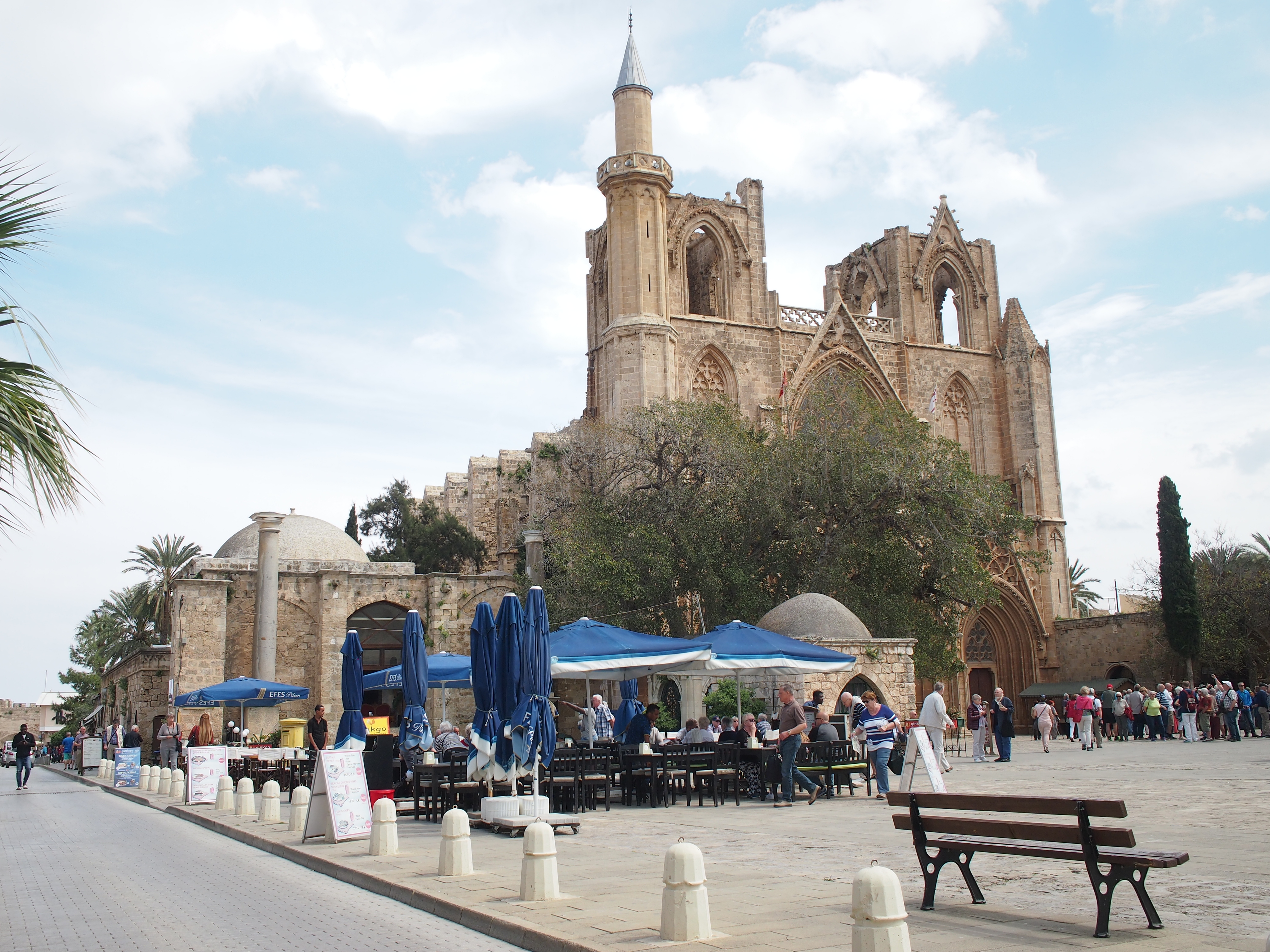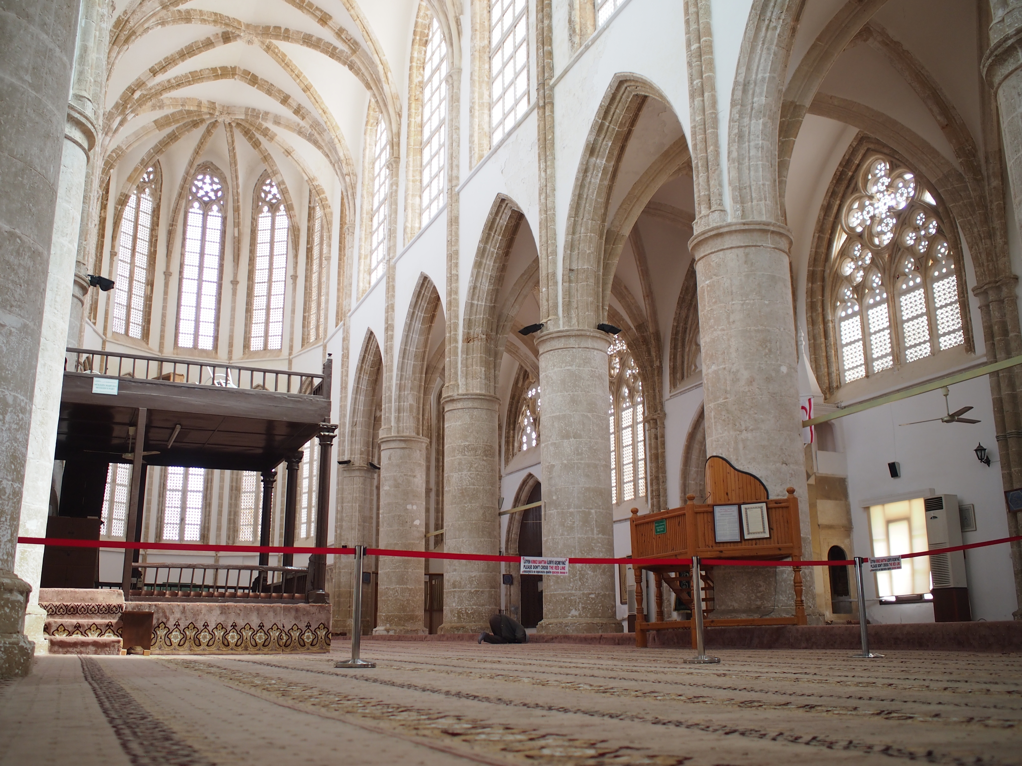元々キプロスは、15世紀末までビザンツ帝国統治下でキリスト教勢力の基地として役割を持っており、宗教的にはカトリック教会だったところ、16世紀後半オスマン帝国占領下に変わり、元の建物を活かしつつ見事にモスクに改装。
