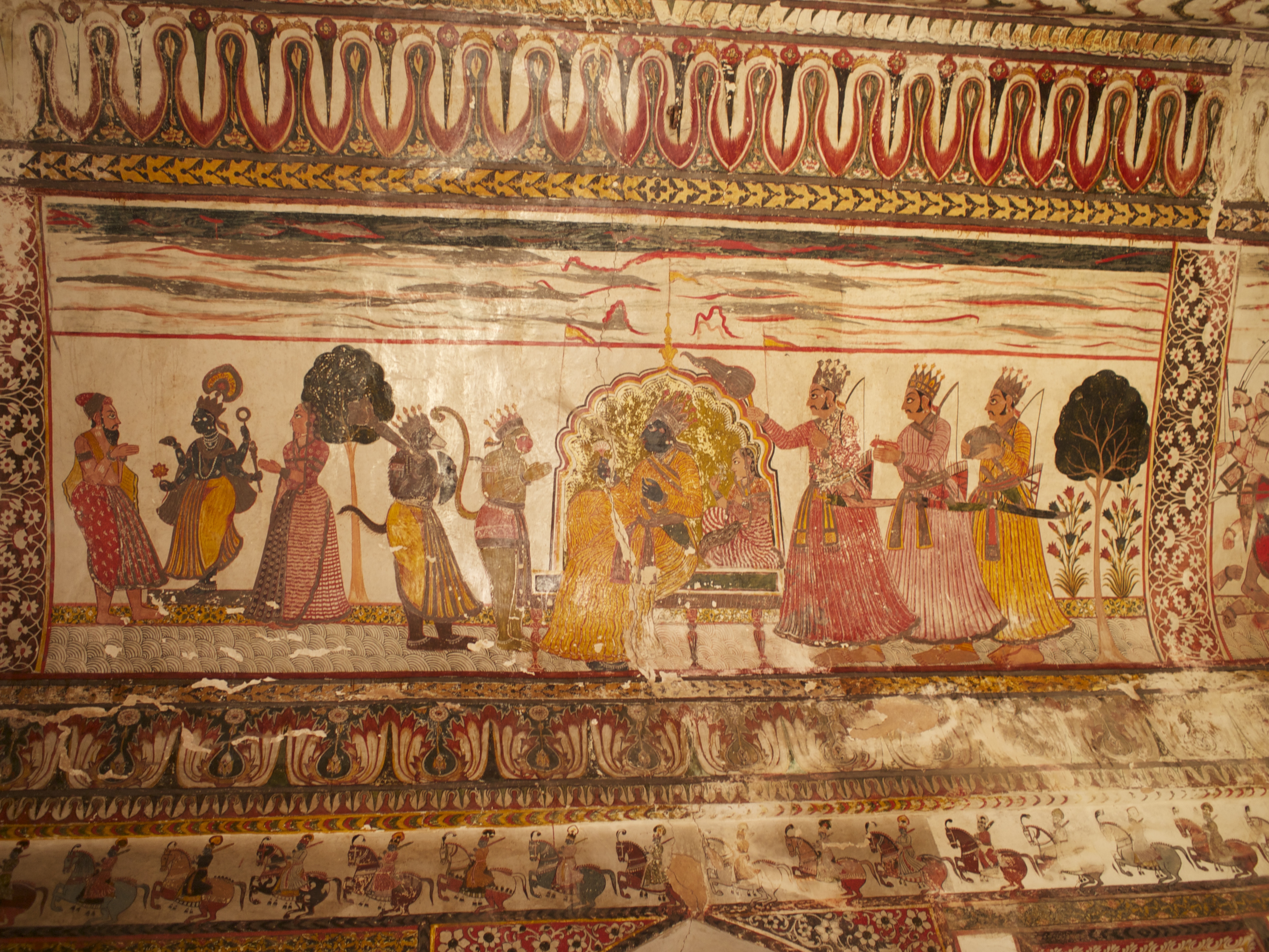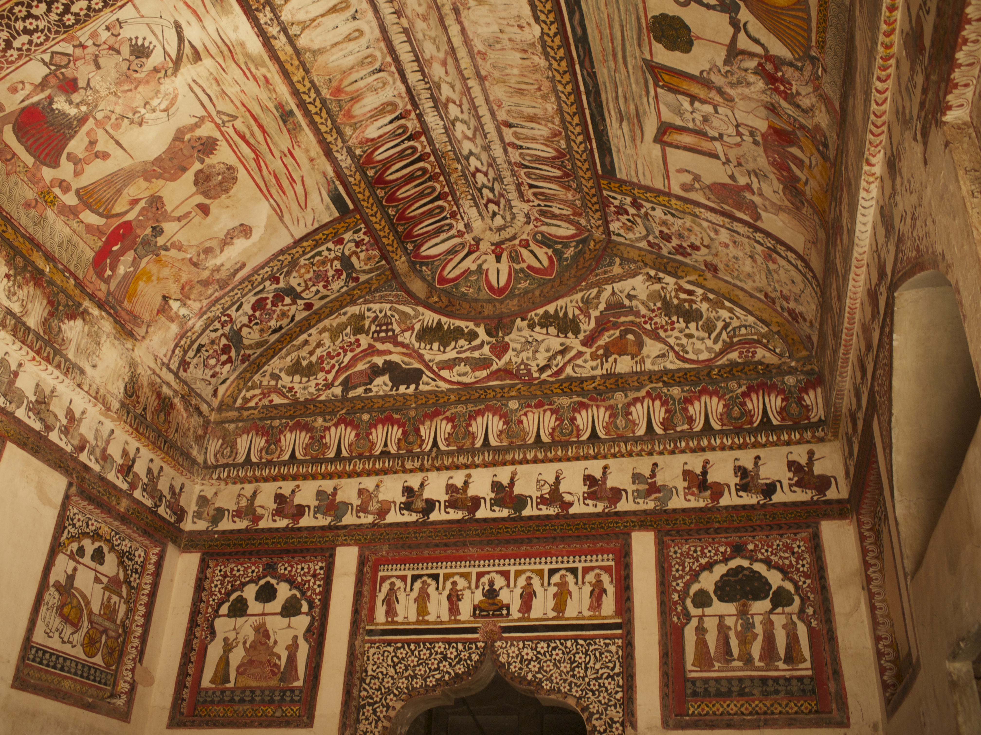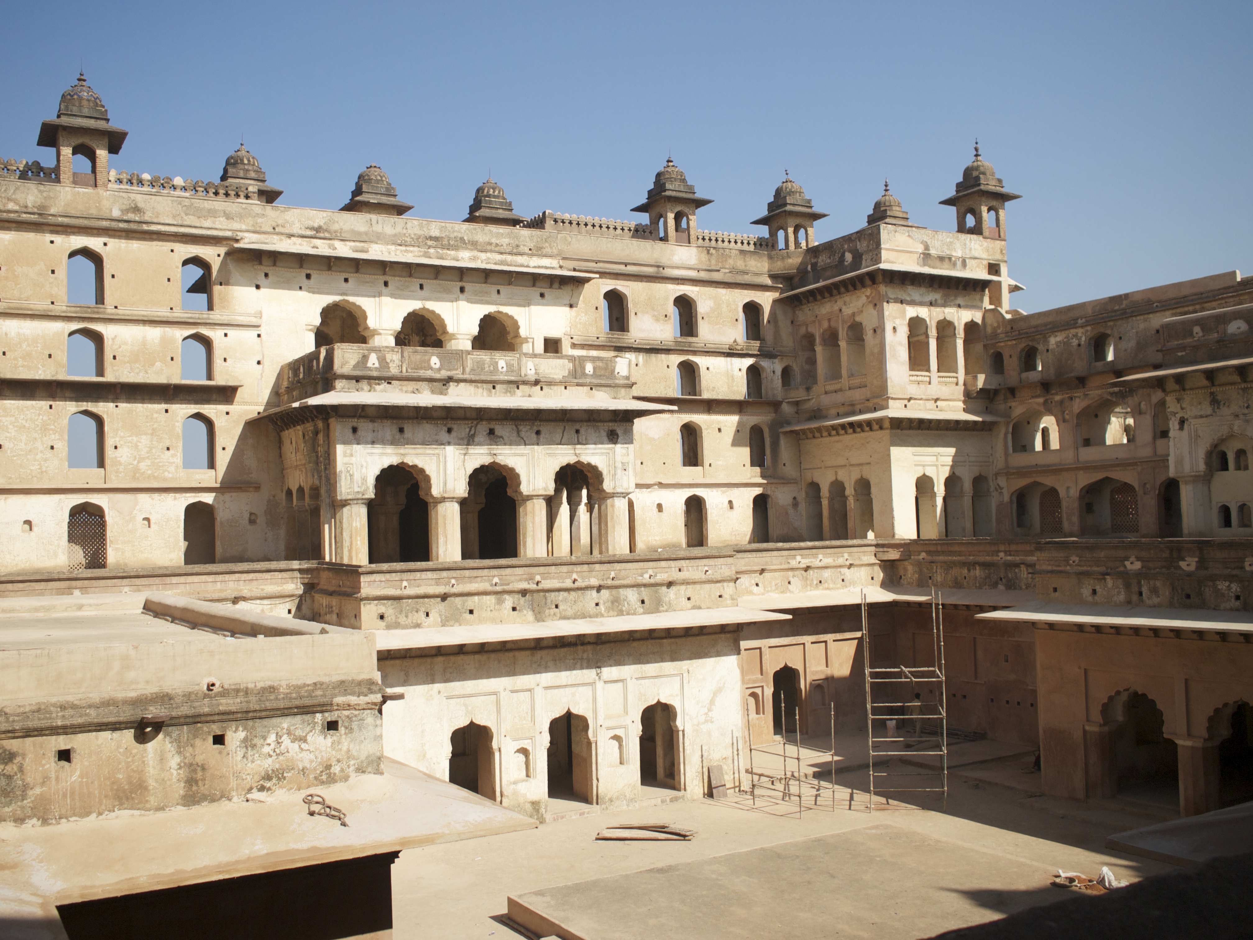 ムガル帝国時代(15〜17世紀に栄えた王朝、タージマハルもこの時代に建てられた)ならではのイスラーム建築(ドーム状のやつとか、タージマハルのよなやつ)とヒンドゥー建築(カジュラホのようなやつ、塔状のやつとか)が融合した建築様式が多い。