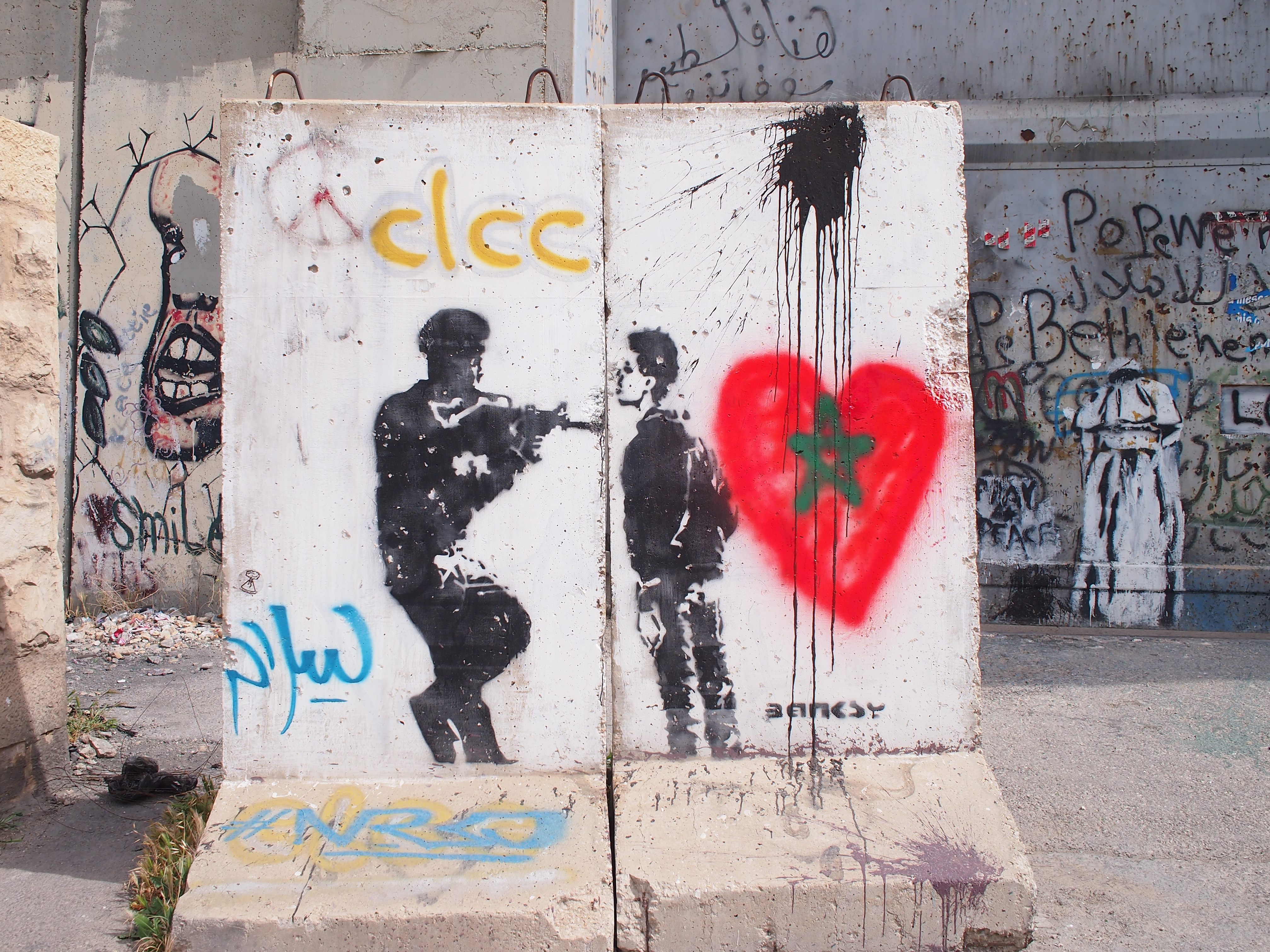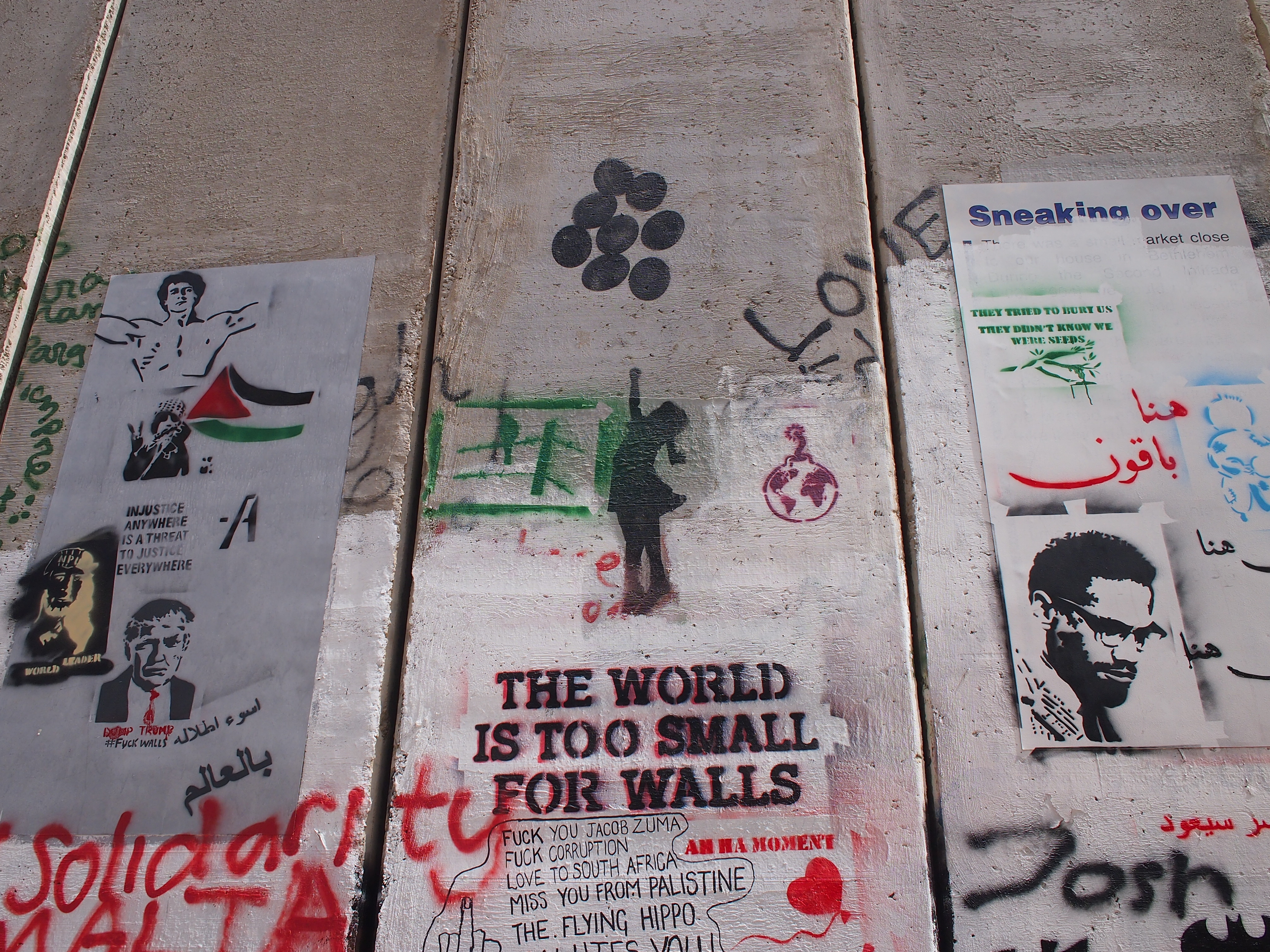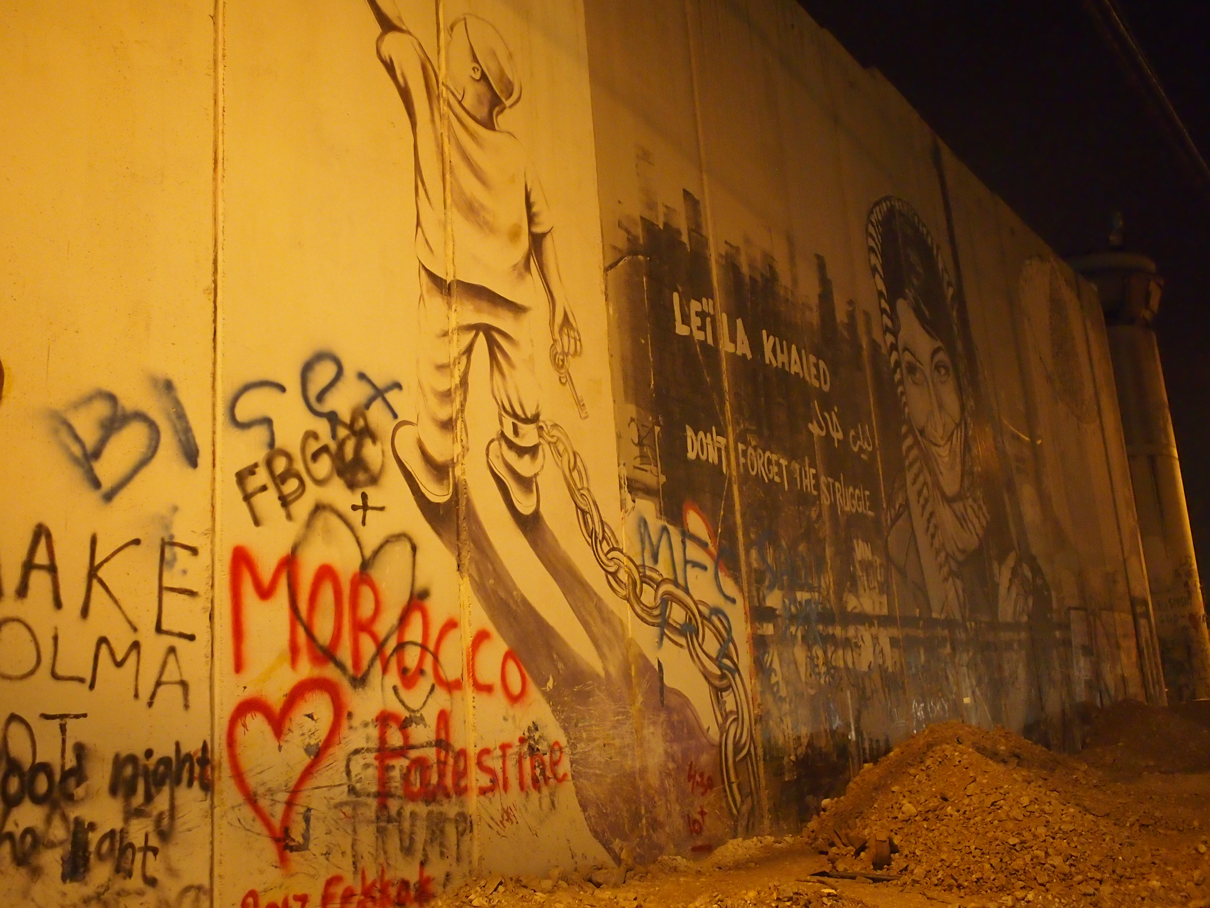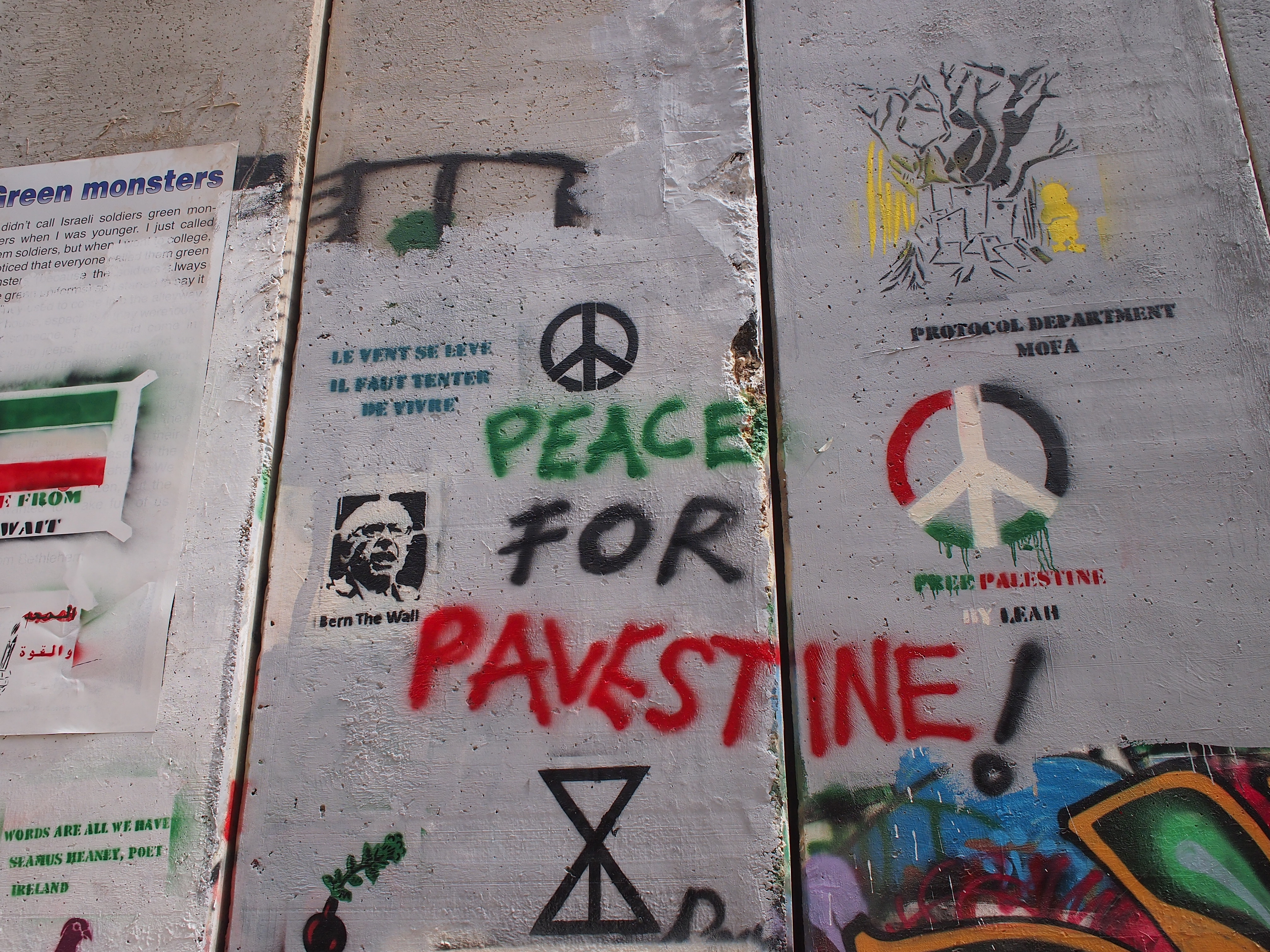 壁にはたくさんのパレスチナの平和と自由を願うメッセージやアートが描かれていました。
