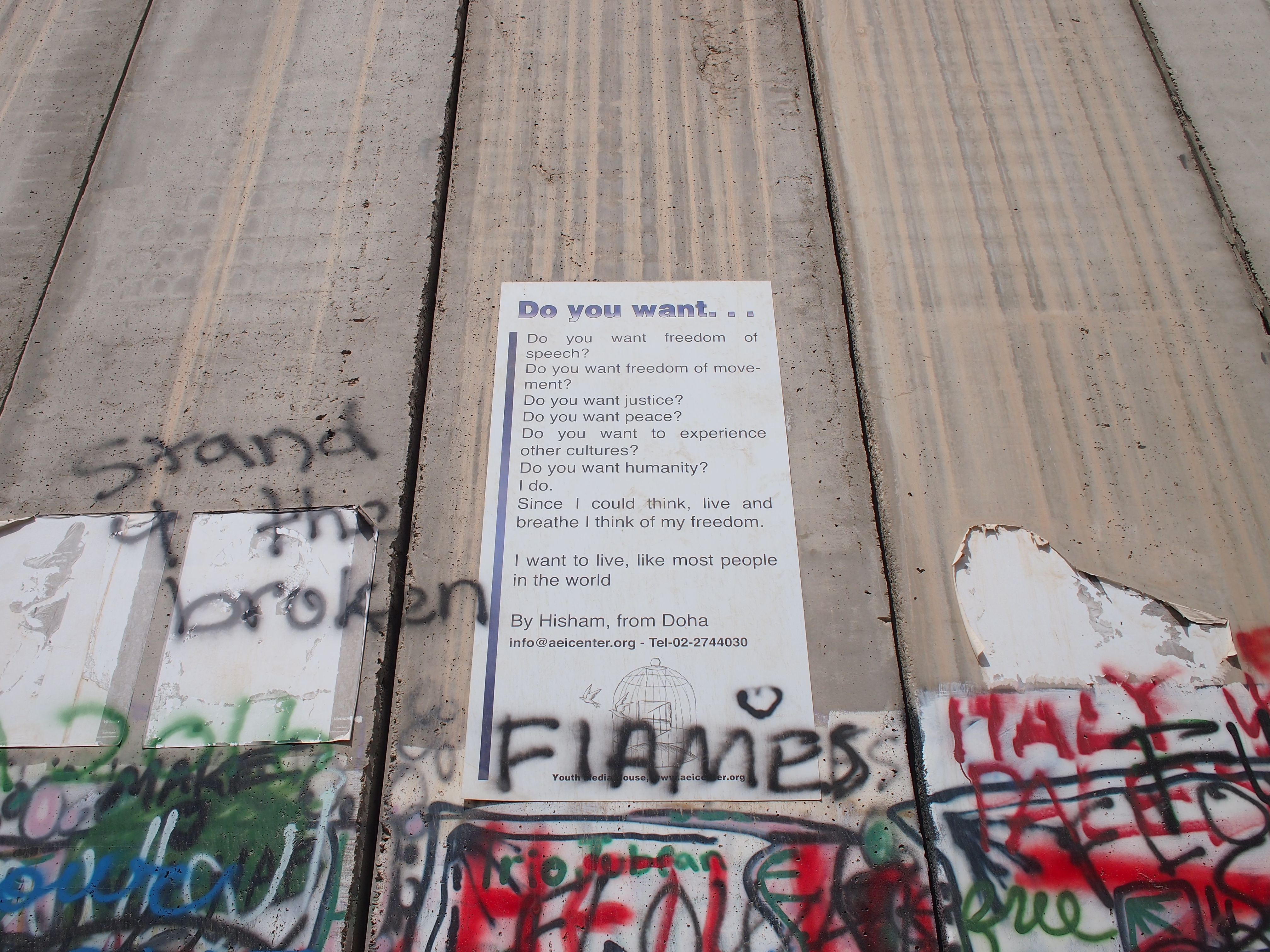 Just forget the wall, forget our prison. When I grow up I’m going to be a creator, I hope I have the power to change the wall and create it into something else. Something that is harmless, that doesn’t hurt people or imprison them.